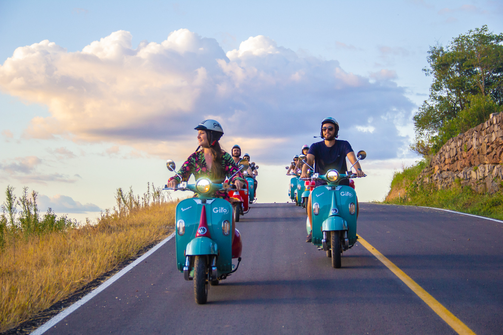 No Tour de Vespa – Giro di Pádua você irá dirigir uma Scooter Elétrica pelas estradas do interior, parando em vinícolas da região para conhecer e desfrutar, além de conhecer uma vista incrível do Vale do Rio das Antas.